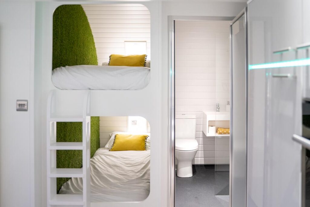 Built into the wall, these wardrobes are perfect for keeping space in the pod as well giving customers plenty of