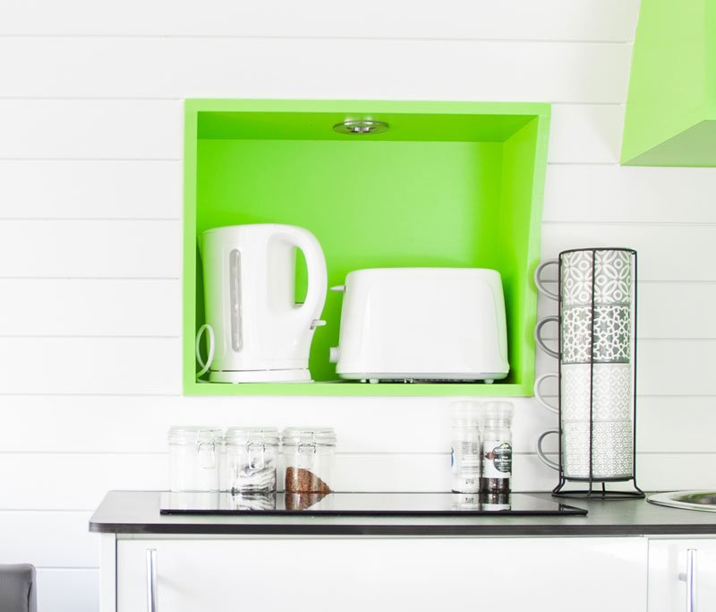 Built in wall pockets for room saving in pods. Maintains the internal space while looking stylish with your chosen paint colours.